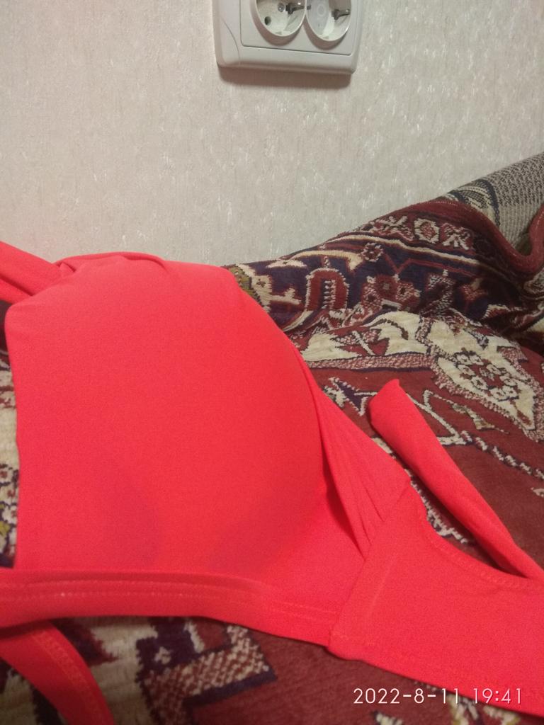 Очень красивый качественный купальник. Покупаю у этого продавца не первый раз. Всегда радует качество пошива, соответствие изделий размеренной сетке, наличие фирменного пакета для транспортировки купальника, если даже он влажный после пляжа. Купальник пришел не красного цвета, как я думала, а обалденного сочного цвета, оттенок глубокий коралловый. На фото выглядит холоднее, поэтому скидываю скрин нужного. Мои параметры: 113-85-120, рост 177. Чашечка плотная, на косточке, прекрасно держит форму. Хорошо поддерживает пышную грудь - у меня 85Е. Нравится, что сзади на завязках и можно регулировать объем. Поскольку я в процессе похудения, было бы очень грустно, если бы следующим летом он стал мне большой. Продавца рекомендую!