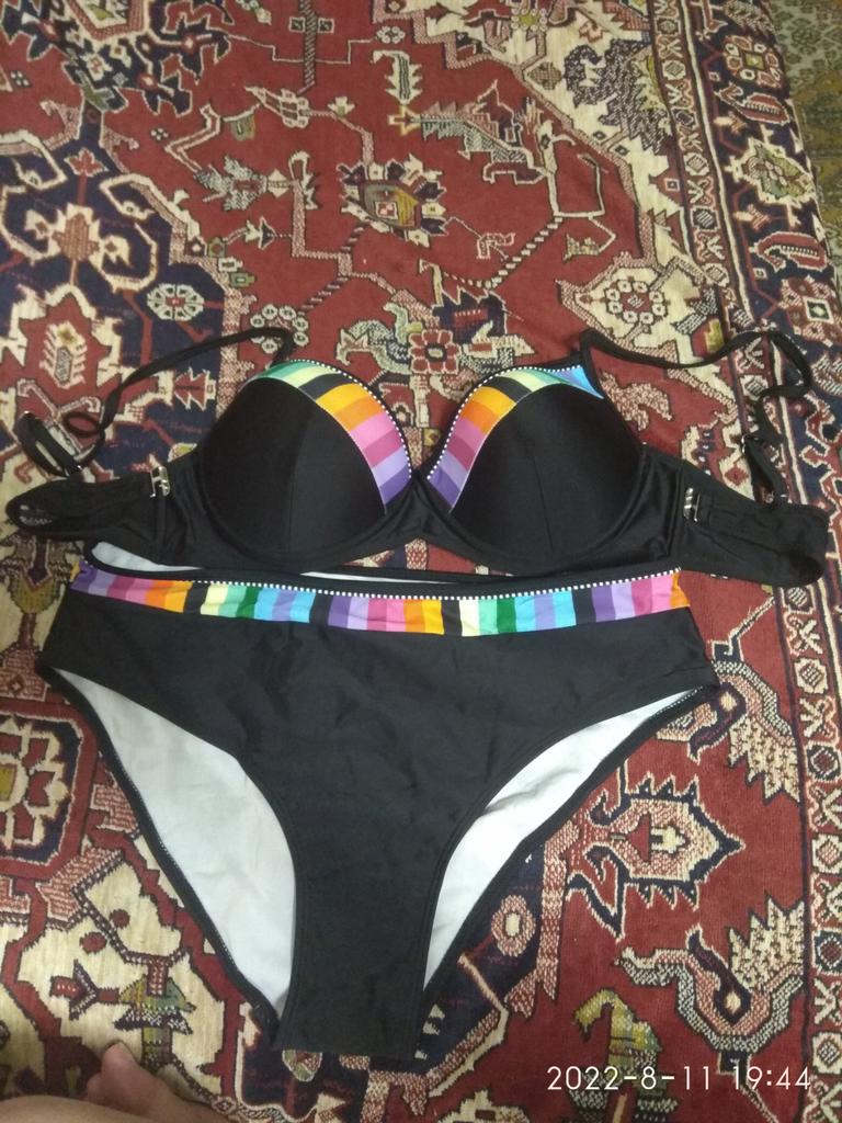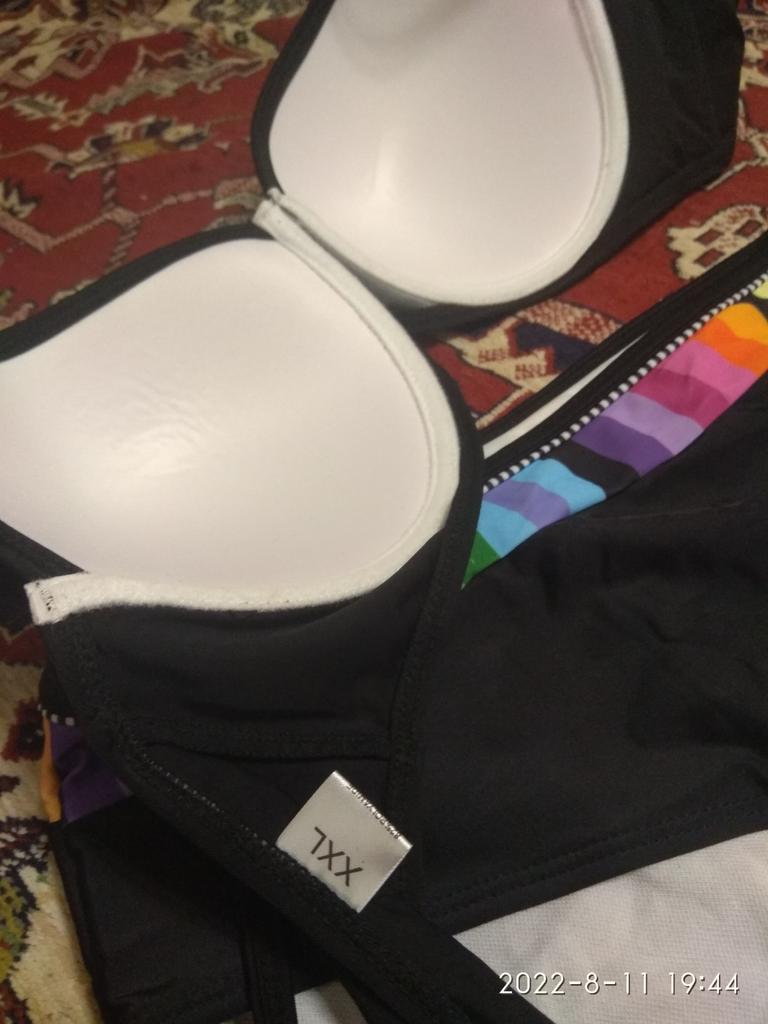Заказала два купальника.Пришли в срок.Доставка около месяца.Оба размер 2хл.Один ярко морковного цвета,яркий.На лифе два пятна, как будто полинял от сырости.Попробую отстирать.Другой черный с ярким принтом.Качество у купальников отличное.Ни единой торчащей нитки.Были упакованы каждый в отдельный пакет.К морковному ещё дополнительный отдельный пакетик с верёвочками, для купальника.Сначала подумала,что утону в них.Но при примерки оказались прям на меня.Я ношу верх 52,низ 54.Лиф 3 размер.Имейте ввиду,что бретельки у лифов не отстёгиваются.Застежка на черном металлическая,а на морковном просто завязки.Купальниками довольна.Рекомендую.Спасибо продавцу.Дополняю:пятна не отстирались,а размылись по всему лифу.Очень грустно,поэтому морковный не рекомендую,что-то не так с красителем.Проявляется черный пигмент.Очень жаль.Сам купальник классный.