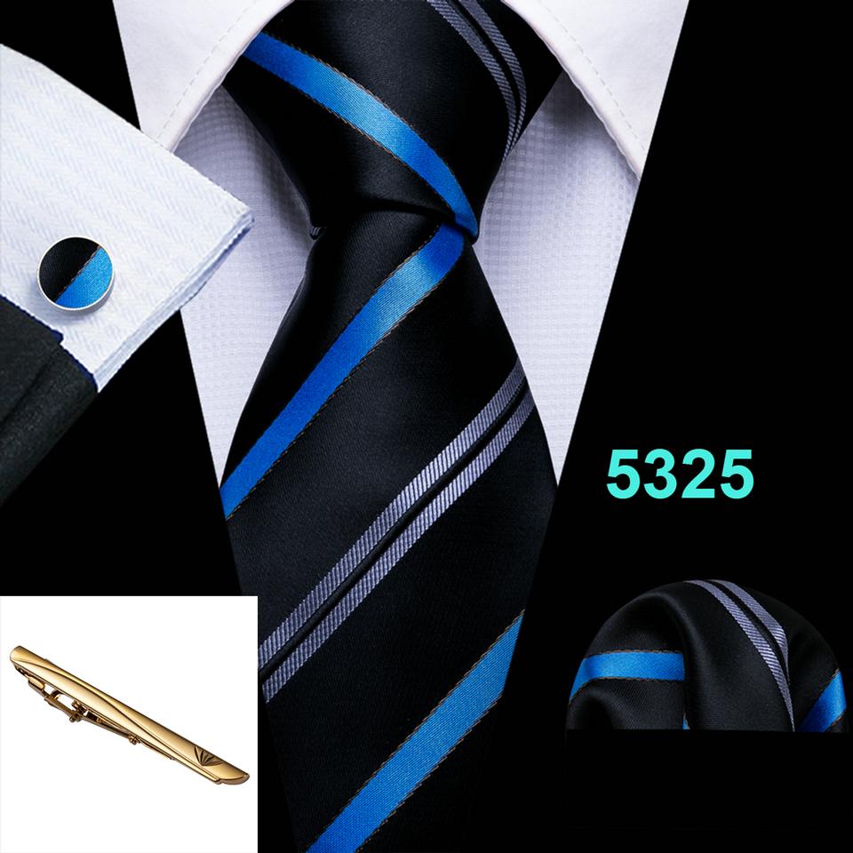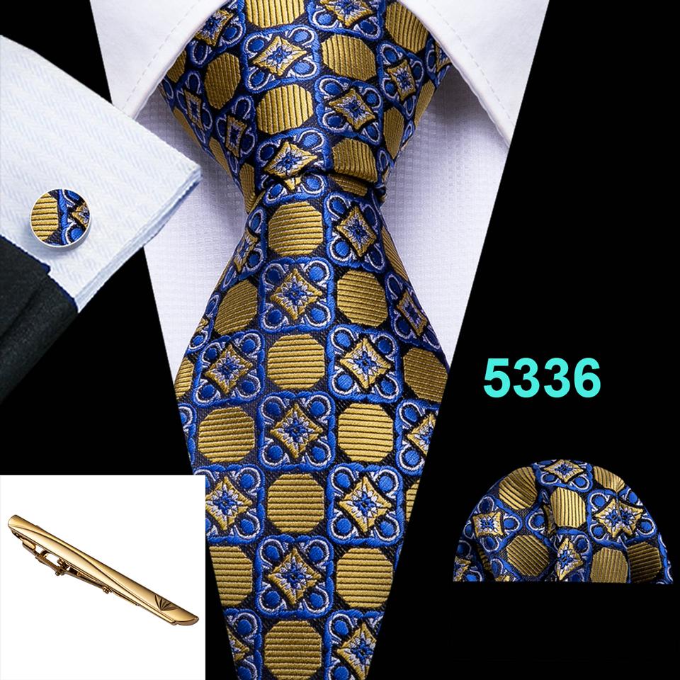 Barry.Wang Синий галстук, шелковый мужской деловой галстук, носовые запонки с золотым галстуком Barry.Wang