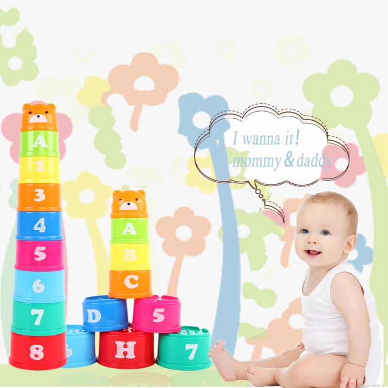 Реальные фигуры и буквы, детские развивающие игрушки, 9 шт., детские забавные штабелируемые чашки, игрушки, забавные радужные чашки, штабелирующая башня, мини-игрушка-медведь, подарки