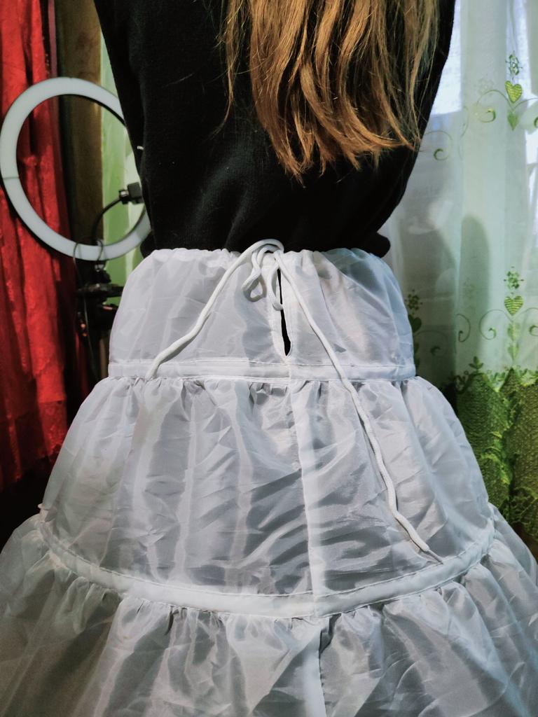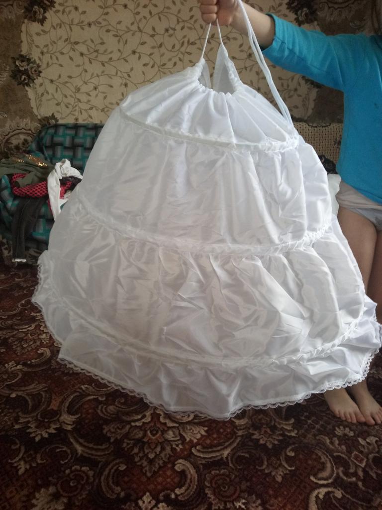 Подъюбник) Качество,пошив хороший) 3 кольца. Вязочки регулируются. (На любую талию подойдёт) Брали под платье... Для выпускного. Но к сожалению не пригодился,т.к выпускного не было по сути... 🤷🏻♀️ Останется для какого-нибудь торжества либо продадим) 😁 Подойдёт хорошо девочки 140-150 роста. (Возможно даже больше)