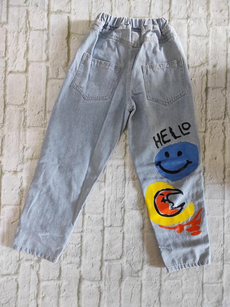 Джинсы для девочек-подростков и мальчиков, дети от 8 до 12 лет, повседневные брюки высокого качества с принтом граффити и брюками с радужным рисунком