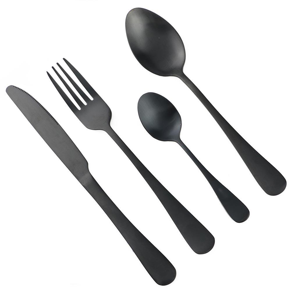 4 шт./лот, матовый черный набор столовых приборов, нож из нержавеющей стали, вилка, чайная ложка, набор столового серебра, многоразовая посуда для свадебных путешествий — купить товар онлайн с бесплатной доставкой по всему миру!