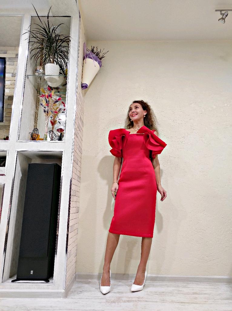 Платье - роза🌹 + авторские видео от меня Привет! Ох, девочки какое платье я вам покажу 😍 Эффектно, яркое, женственное, моделирующее фигуру и однозначно привлекающее к себе внимание! Ткань: Неопрен. Специальный, вспененный материал который отлично держит форму, почти не мнется, плотный, моделирует фигуру, немного тянется. Ткань не летняя в сильную жару вам в нем будет жарко. Дизайн: В дизайне выдержана идея классического платья футляр с хорошей длинной ниже колена и декора в виде раскрытых бутонов роз в виде воланов в районе груди. Воланы большие закрывают визуально часть руки и именно с самом широком месте, таким образом руки смотрятся худее. Лямки широкие не регулируются по длине. Зона декольте оформлена аккуратно, что мне нравится, что она не открыта полностью и смотрится это очень аккуратно и эффектно. На спине есть длинная, потайная молния. Внизу со снюпины есть не большой разрез. Качество: Сшито все идеально, ровно и аккуратно. Минусы: Ткань возможно кому то покажется не привычной, но для меня это идеальный вариант, так как она хорошо моделирует мою фигуру. Размер: На мне XL Мои параметры рост 172 см 97 /76 /106 см Детальные замеры изделия : Длина 108 см ОГ 100 см + 4,5 см (так как есть шов) ОТ 88 см + 7 см ОБ от 100 до 108 см В моем размере от 48 до 50 размера будет хорошо. Резюмирую : Очень эффектное, яркое платье! Такого точно не у кого не будет на вечеринке ☺️👍 При этом дизайн и длина на все времена и практически под любой тип фигуры. Я очень довольна своим выбором! Вам смело рекомендую! Берем! Я не прощаюсь, Мой инстаграм #Miss_Kuksik ❤️