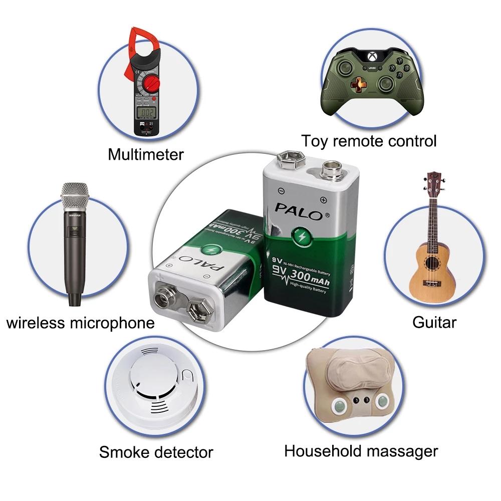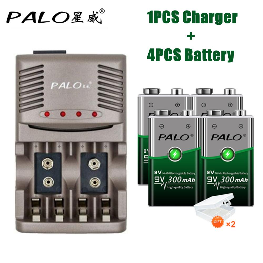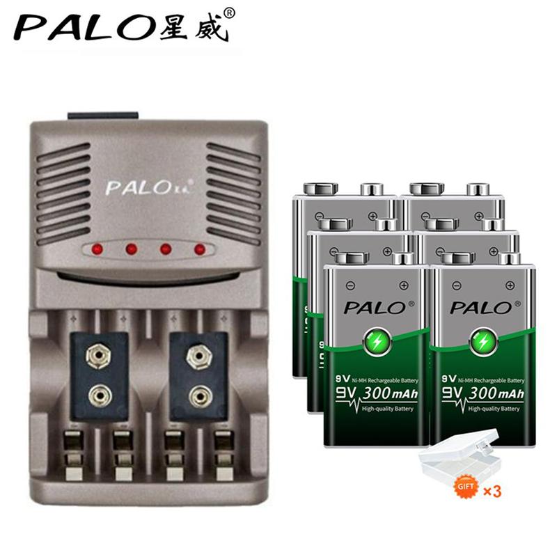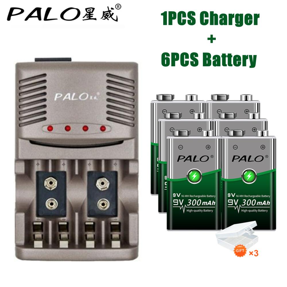 PALO Аккумуляторная батарея NI-MH 300 мАч 9 В 6F22 + интеллектуальное зарядное устройство для аккумуляторных батарей 1,2 В AA / AAA Ni-CD Ni-MH 9 В, комплект для зарядки