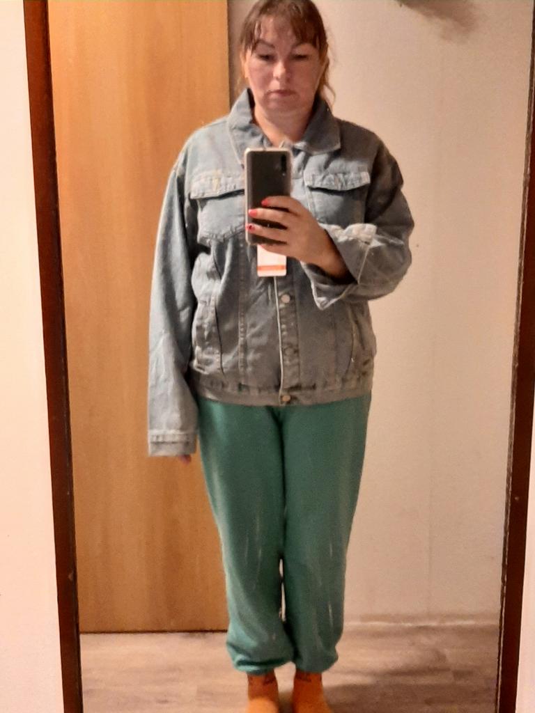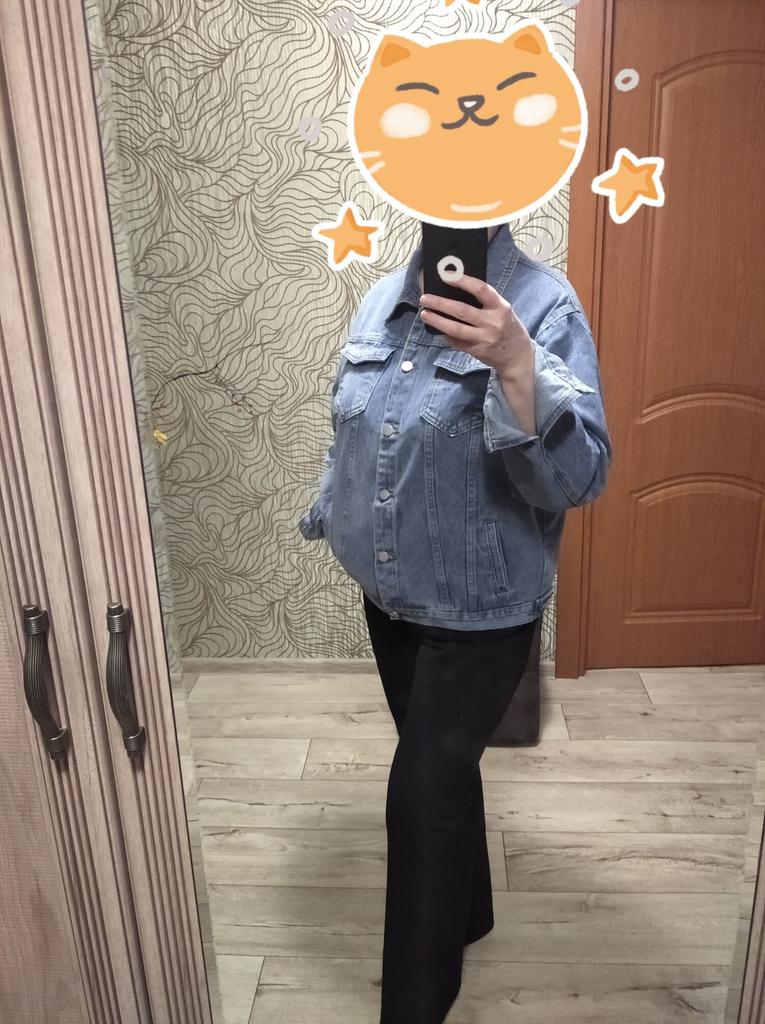 Не то, чтобы я сильно расстроилась, но не люблю оверсайз. Цвет серо-голубой. Ростовка велика. Думаю, если бы на размер меньше взяла, то в бёдрах не застегнулась бы. Плечи висят, а в бёдрах узко. На рост 162 рукава длинные. На ОГ - 106, немного большая. Несуразная в целом. В вороте, где верхняя пуговица, сшито не ровно. Пуговица выше, чем петля. Ткань не плотная джинса, тонкая, лёгкая. Всё таки цвет не красивый. Буду носить на кофточку видимо. Может после стирки подсядет, посмотрим.