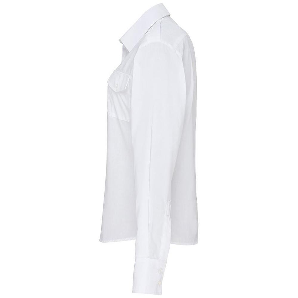 - Для женщин, работающих в сфере безопасности и нуждающихся в более солидной рабочей форме, эта блузка с длинными рукавами имеет петли на плечах для надевания погон, а усиленный воротник позволяет легко закрепить галстук с застежкой..