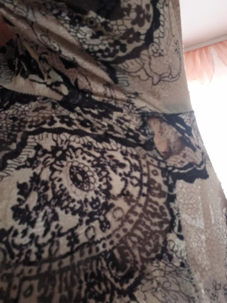 Очень нежная, красивая, чуть с блестками ткань. Такая нарядная блузка, но маломерка! Брала на 50 р. В груди мала, если руки поднять, то собирается над грудью складка и не расправляется, пока не одернешь. В первый же день разошелся шов под мышкой. В такой блузке только смирно сидеть и не дышать!