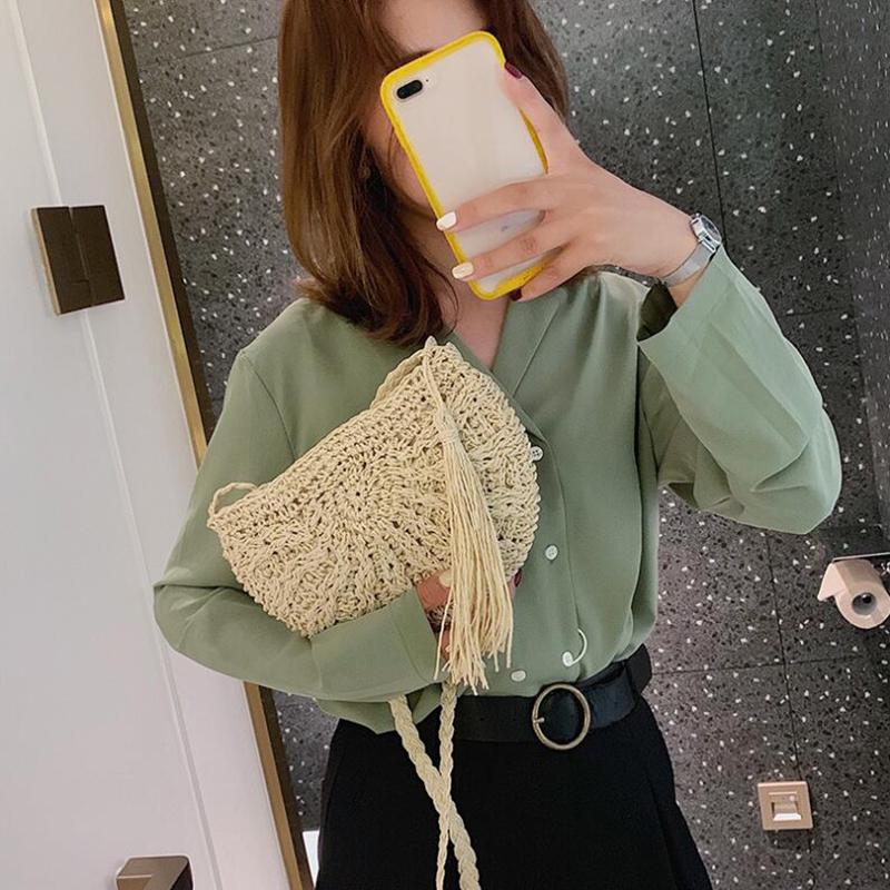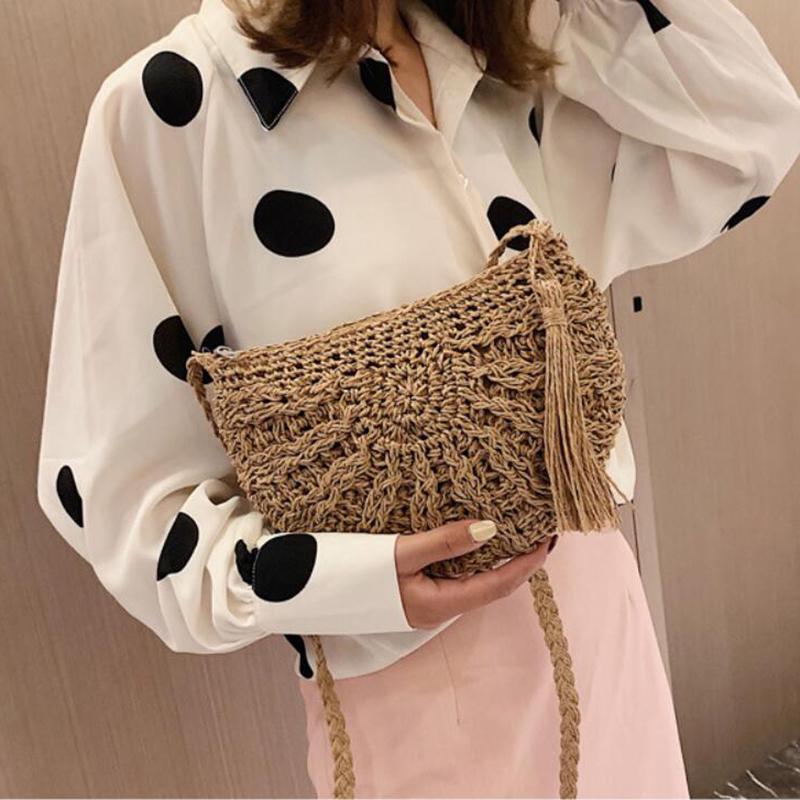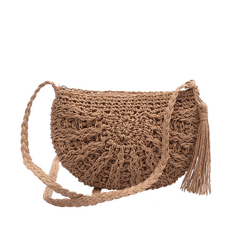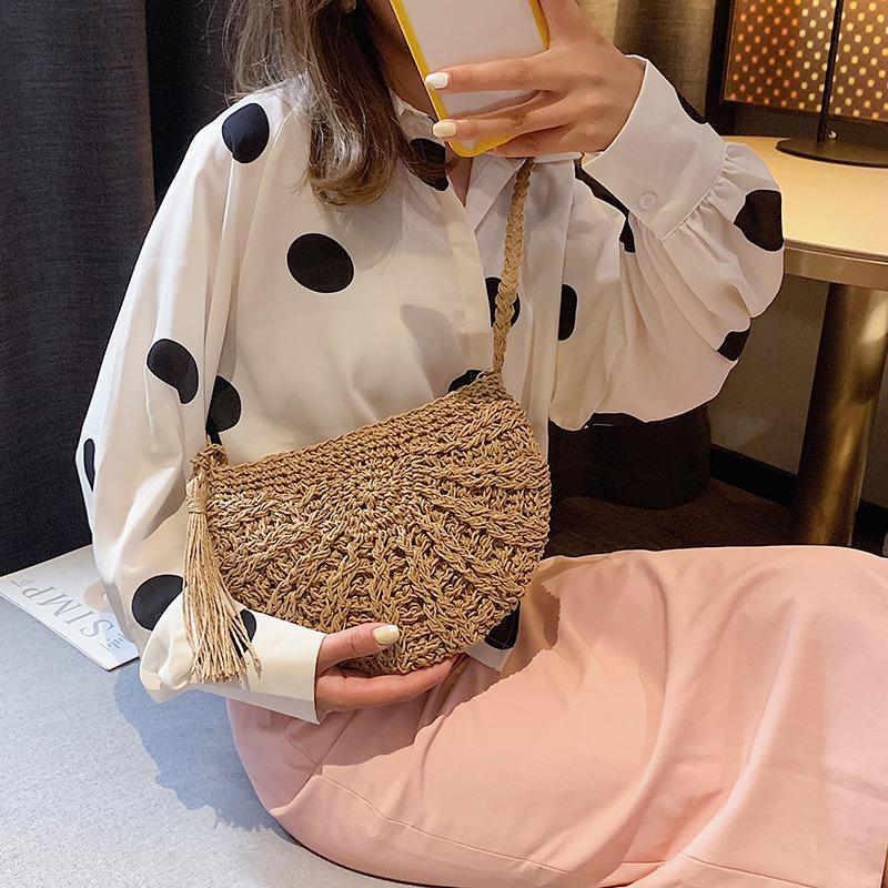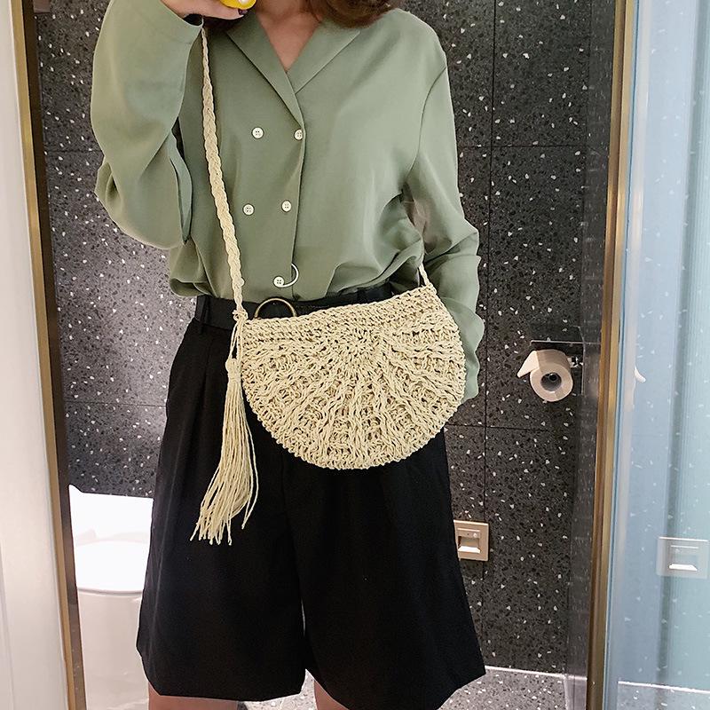 Женская полукруглая сумка с кисточками, соломенная сумка через плечо с луной, летние дорожные вязаные сумки из ротанга