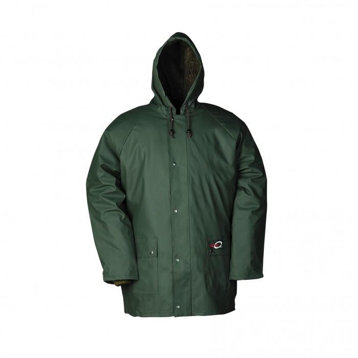 Фиксированный капюшон, застежка на молнию и кнопку, два накладных кармана с застежкой на кнопку, высокочастотные сварные швы..