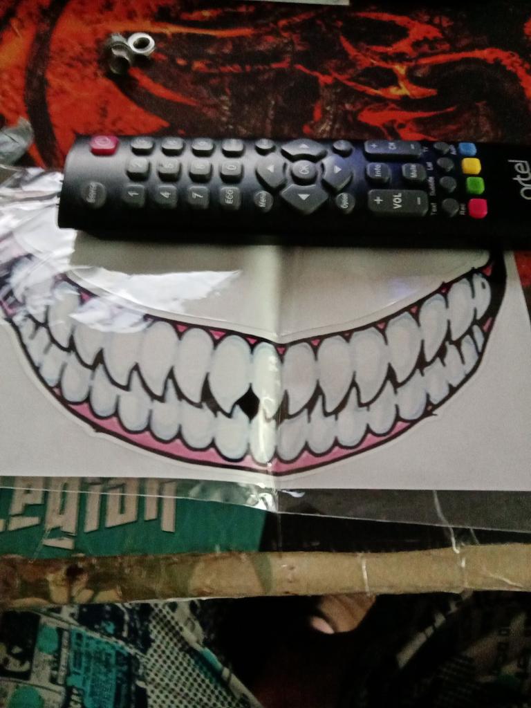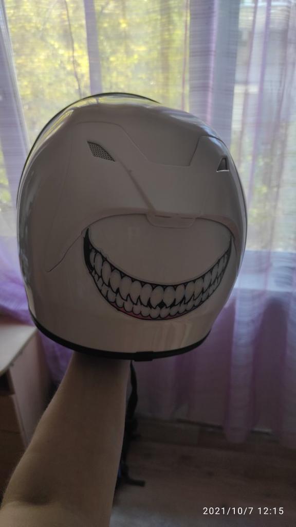 Симпотичный оскал! Наклейка отлично подошла на мотошлем.