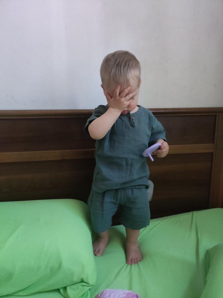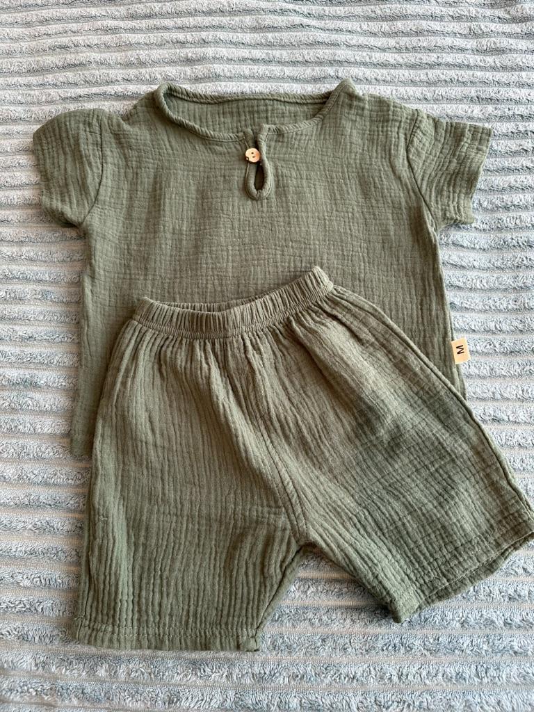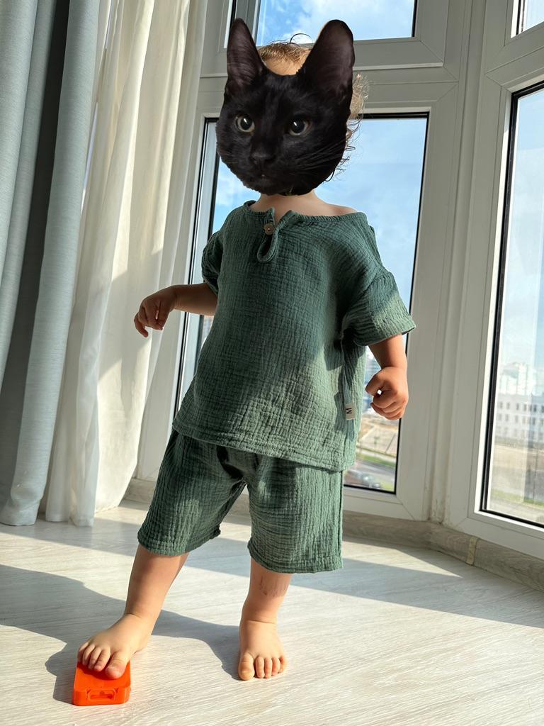 Оооо очень понравился костюм!!! Заказала на лето, шло примерно месяц до Оренбурга. Немного великоват, но это и хорошо. Ткань Муслин, дышит, цвет шикарный😍 заказала ещё и в другом цвете, рубиновый, но на следующее лето уже. Больше размер. Заказываю не первый раз наряд для точки из Муслина. Брали платье с трусиками, бесподобно!!! 😍😍😍😍 На наш рост в 10 месяцев 74см нкмного великоват, но это доже хорошо. На дольше хватит. Бегаем вовсю, на улице +40 иногда. Для лета самое ТО😍