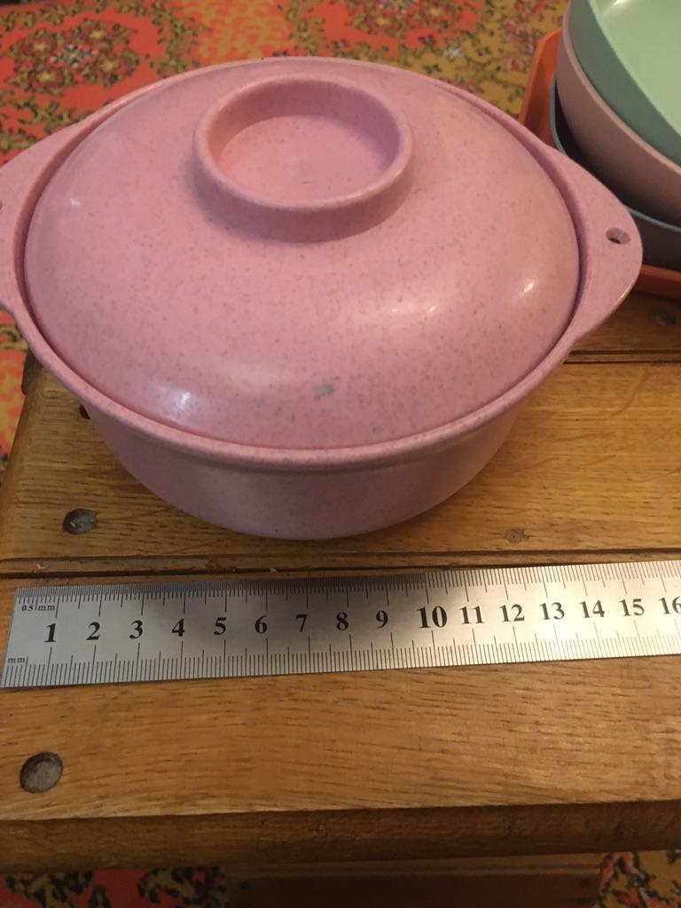 Пластик плотный,крышку можно использовать и как блюдце,форма способствует. Кастрюля небольшая, цвет соответствует заявленному на сайте