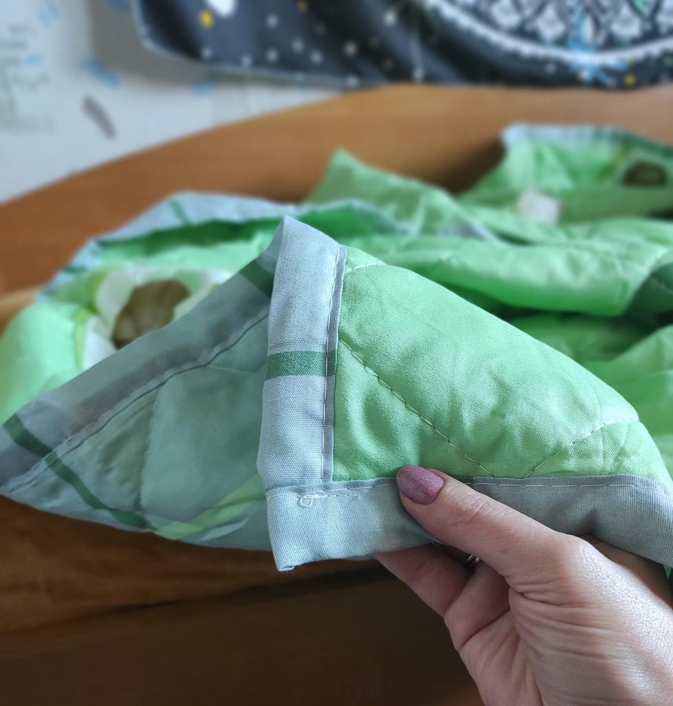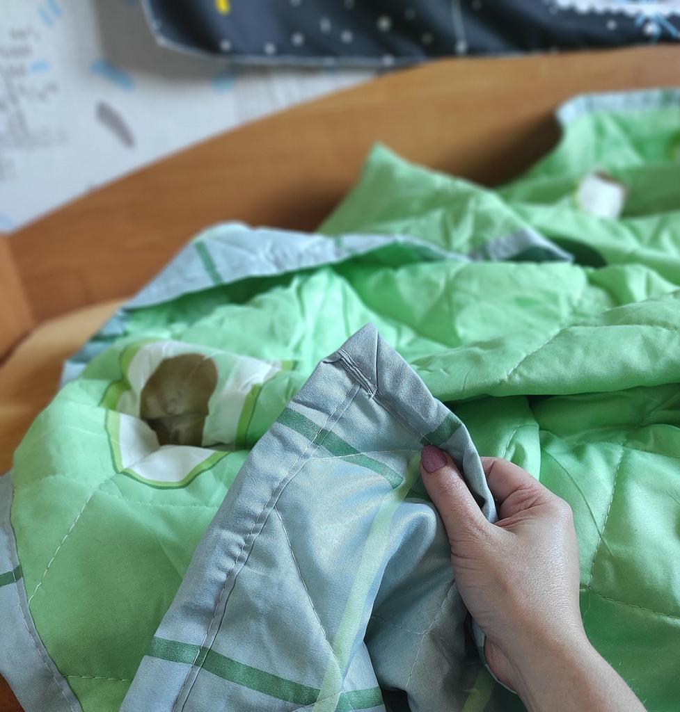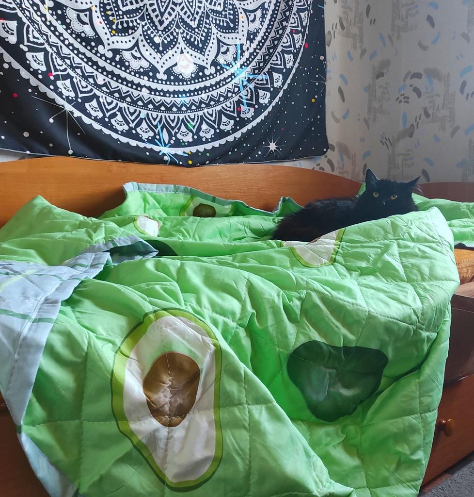 Одеяло 💚 У продавца есть несколько расцветок такого одеяла, размеры тоже разные. Я взяла 170 см на 200 см и конечно выбрала с авокадо 🥑🥑🥑 Одеяло класснючее, оно не зимнее, а для весны - прохладного лета - осени. Принт яркий, четкий - разный с двух сторон. Простегано насквозь. Лёгкое, абсолютно нежаркое. Продавец указывает, что материал - хлопок, думаю, что так и есть. Может присутствовует небольшая примесь синтетики. Одеяло очень рекомендую - обязательно закажу ещё одно 😉 Удачных покупок 🛍️❤️🛍️ Ваша Вика 😊