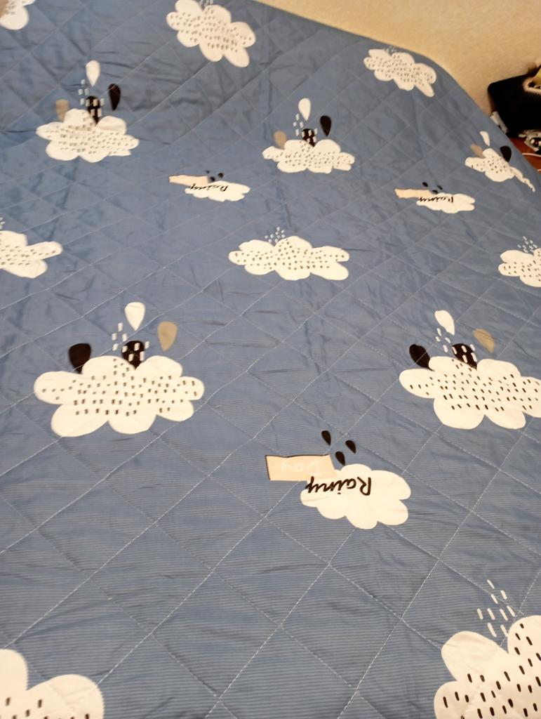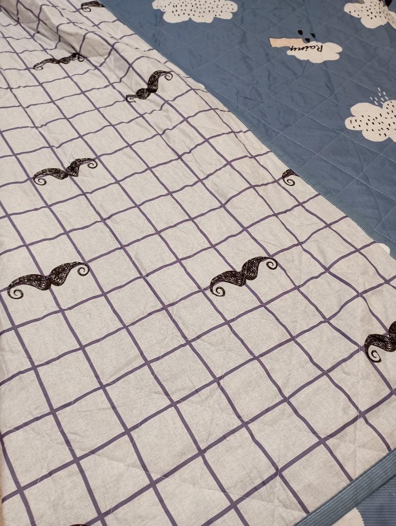 ОДЕЯЛО - ПОКРЫВАЛО !!! , на синтепоне . Листайте карусель : Видео + фото ! ТУЧКА 🌧️🌧️🌧️🌧️🌧️🌧️🌧️🌧️🌧️ — Здравствуй, маленькая тучка! Наверху одной не скучно? Хочешь, вместе поиграем? Хочешь, сказки почитаем? Или попинаем мяч? Только, будь добра, не плачь! 💦💦💦💦 Купила одеяло с ,, Плачущими тучками ", понравился именно такой рисунок , так миленько 💞 . Это для детей , у них дома жарко , а как будут использовать ( укрываться или застилать постель ), решат сами 👌. У одеяла 2 стороны , можно переворачивать по настроению 😊. ✨ Все искусственные наполнители имеют умеренную теплоотдачу и подходят людям, страдающим аллергией на натуральные наполнители. Основными достоинствами этой группы являются: Гипераллергенность; Антибактериальность; Воздухопроницаемость; Малый вес; Легкость ухода. ✨ Чем чаще выполнена стежка, тем лучше. Одеяло лёгкое и тонкое , по отзывам я это знала , и хотела такое . ✨ Как Вы уже поняли, облегченное одеяло имеет самую маленькую плотность и подойдет для укрытия либо в летний период времени, либо для тех людей, у кого в квартире не зависимо от времени года постоянно теплая температура, а так же для людей, которым постоянно жарко. Чем больше показатель плотности, тем больше наполнителя в одеяле, и, соответственно, оно теплее. Естественно, все мы живем в разных квартирах, домах. У каждого из нас свои особенности отопления: у кого-то индивидуальное, у кого-то центральное, а у кого-то может быть и печное. У кого-то дома всегда жарко, а у кого-то, наоборот, постоянно холодно. Кто-то покупает одеяло в летний период года, а кто-то в зимний. 💢 Размер ( евро ) : Длинна - 2.20 см. Ширина - 2 м. Это по моим изменениям . 💢 Ткань : напоминает Сатин , но не уверена . 💢 Наполнитель : Листовой синтепон . 💢 Запаха у одеяла нет . Брака и ниточек не обнаружила . 💢 Этикетки или какой-то информации о составе нет . Ожидание и реальность + цена ,совпали . Будем пользоваться таким симпатичным одеялом 👍. Приятных покупок 🛍️🛍️🛍️ !!! Ваша Svetlana 🌺 .