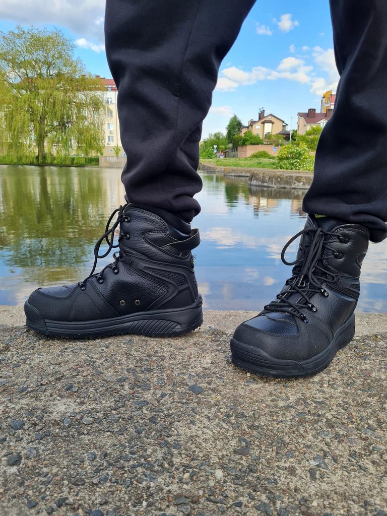 Идеальные ботинки для рыбалки 🐟проверенного и полюбившегося бренда Kylebooker 🖤 +видео 📹 обзор ✅Inst: Catherine_blogger Ботинки шикарные без преувеличения! Они достаточно увесистые, пошив на высшем уровне, как и всегда у данного бренда, всё продумано до мелочей. Материал - натуральная кожа, ПУ-кожа, резина. Подошва высокая (2,5-4-5 см), удобная, в меру гнётся, не дубовая. Имеется дополнительная защита. Ботинки на шнуровке, имеют специальные сеточки на внутренней стороне над подошвой, что защищает от попадания ила, мелких камней, выводят воду. Фурнитура металлическая, имеются дополнительные кольца для того, чтобы цеплять крючок от рыболовных штанов или вейдерсов, что очень удобно, защищает от попадания воды. Сзади пришиты дополнительные кожаные петельки, удобно повесить на крючок. Подошва засчёт своей ребристости, не позволяет ногам скользить. На язычках и стельках - логотип фирмы. Я заказывала размер 41, по стельке 28 см, на 42 размер и неопропеновые носки сели впритык, не критично, но можно было на размер больше взять, у продавца на данный момент размерный ряд 42-46. Товар рекомендую от души, он стоит каждой потраченной копейки!👍👍👍👍👍💯💯💯💯💯 Доставка ✈ до Минска заняла 3 месяца. Спасибо продавцу и джуму 😘 Благодарю вас за ваши лайки,❤ комментарии 💬 и подписку ✅