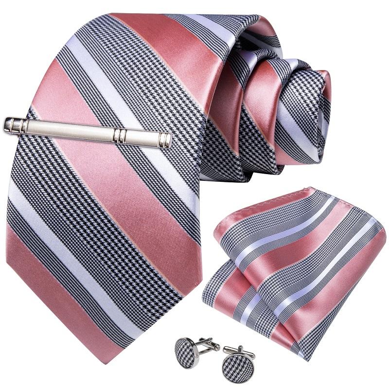 Dibangu Галстук для мужчин, полосатый дизайн, шелковый галстук, носовой платок, запонки с зажимом для галстука, набор для свадебной вечеринки