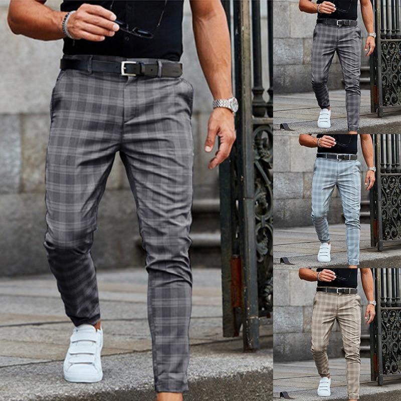 2021 Новые мужские брюки, повседневные мужские брюки, узкие эластичные мужские брюки-чинос, облегающие мужские повседневные брюки, клетчатые брюки в клетку — купить товар онлайн с бесплатной доставкой по всему миру!