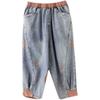 WTEMPO Женские джинсы с эластичной резинкой на талии и рваными отверстиями, свободные джинсы больших размеров, тонкие укороченные брюки