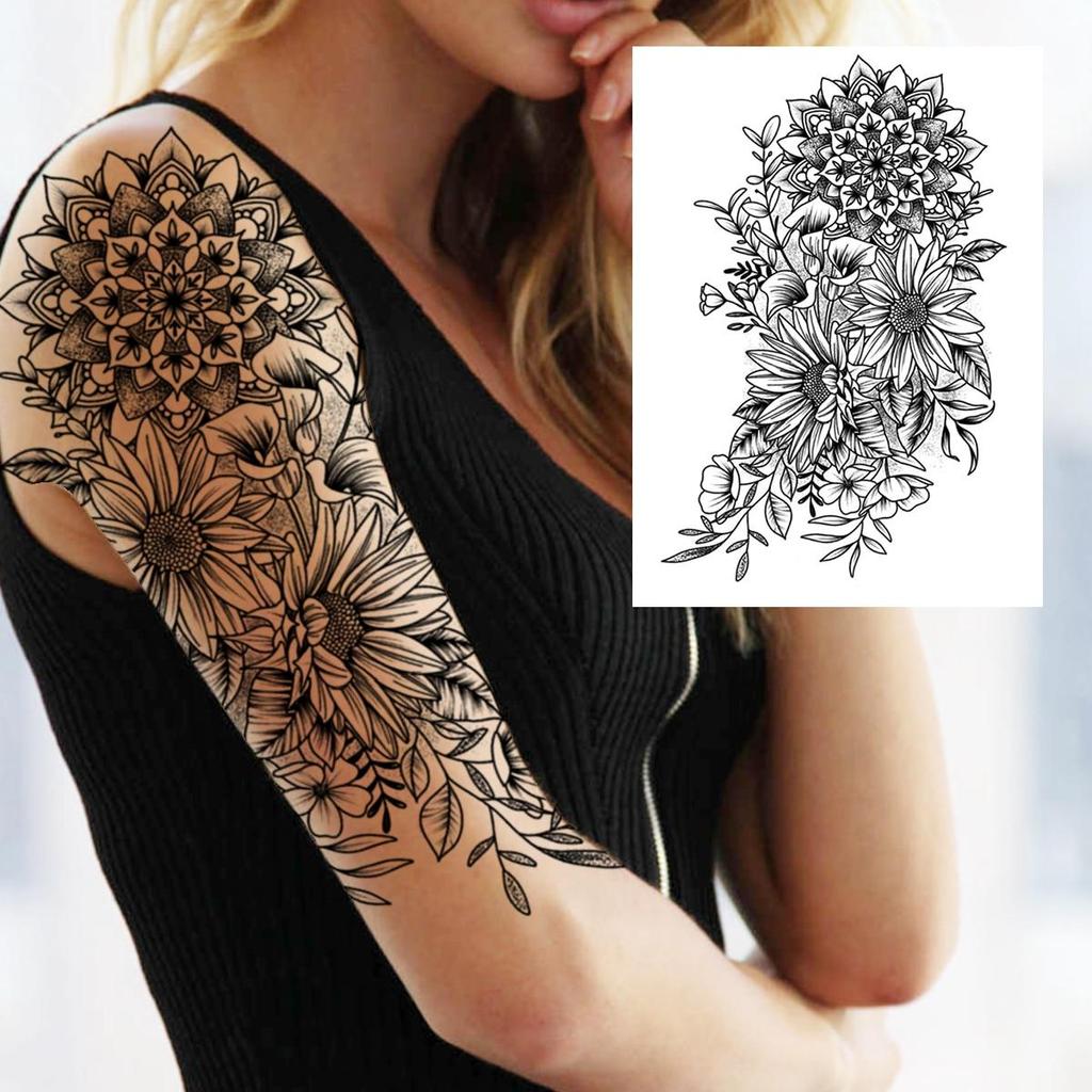 Акварельная временная татуировка с перьями и цветами для женщин и девочек, 3D татуировки с бабочкой и розой, наклейка, геометрическая сексуальная татуировка на грудь, шею