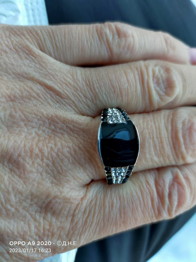 Немного разочарован в этом кольце, на фото смотрится отлично, а по факту😔 место черного Агата просто покрашена была, но по размеру подошёл, ставлю 3 звезды.дополняю отзыв, кольцо не соответствует заявленному, на фото одно а по факту совершенно другое .2 звезды не берите.