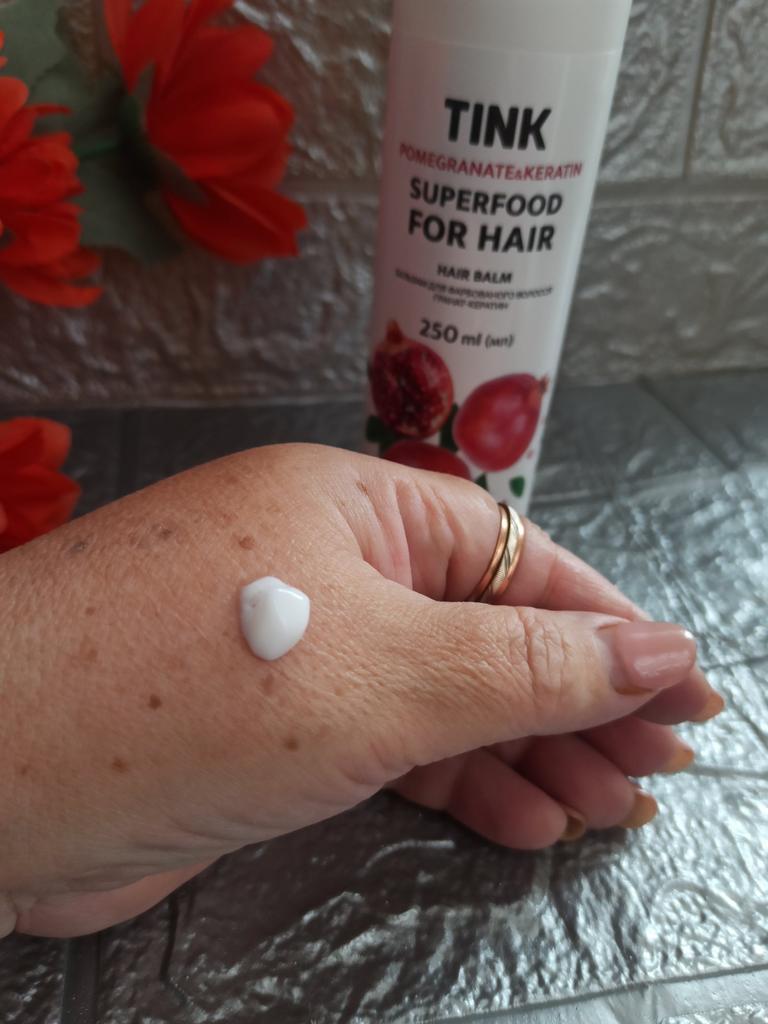Бальзам для окрашенных волос Гранат-Кератин от бренда Tink Бальзам для окрашенных волос, насыщенный природными маслами и экстрактами. В экстракте граната содержатся активные вещества, содержащие красители, сохраняя яркость, насыщенность цвета. Кератин глубоко увлажняет и питает волосы, заполняет глубокие структурные повреждения и создает защитный слой. Уникальная формула бальзама позаботится о ваших волосах от корней до самых кончиков. В результате регулярного применения бальзама волосы выглядят ярким и ухоженным. Предоставьте вашим локонам жизненную силу и природную красоту! Объем - 250 мл Наносить на чистые мокрые волосы (сразу же после мытья головы ). Дать 2-3 минуты для впитывания нужных компонентов и смыть теплой водой. Использовать только на длине волос, избегая корней ( как и все бальзамы с маслами). Заказывала маме, она осталась довольной . Волосы становяться мягкими, блестящими. Не утяжеляет и сохраняет природный объем на волосах. Доставка в Житомир всего 2 дня. Так как этот бренд украинский. Бесплатная доставка новой почтой .