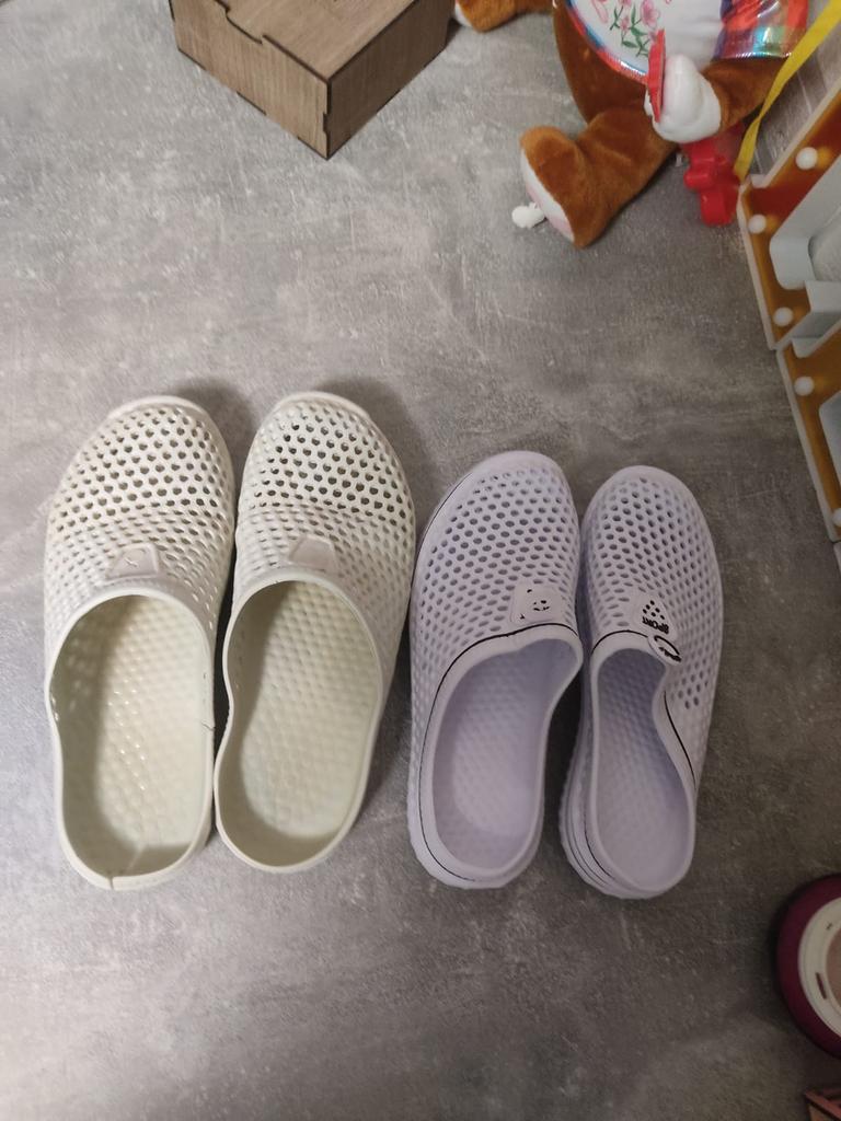 Огромное спасибо продавцу и JOOM за эти тапочки. Лёгкие, удобные, дышащие. Брала на работу. Размер соответствует заявленному. Мой российский размер 34. На фото видно, что они большие мне, так как брала размер 36, моего размера не было. Всё равно удобно ходить. Есть небольшое НО...они пищат при ходьбе. Может только у меня, не знаю, всё равно они хорошие и это не портит моё мнение о них!