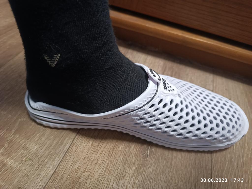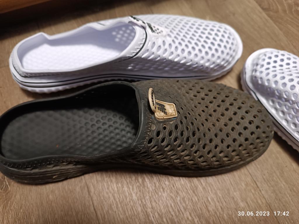 Сразу говорю отзыв будет гневный, тапочки пришли все кривые, косые, полностью деформированные и закреплено, а то есть они смяты во многих местах и один сам по себе, я не знаю как, но он лежал в упаковке и когда я его достал он стоит чуть ли не ребром, то есть, какие то фиксаторы в них пихать теперь, я не знаю?у меня размер 41 1/2 я брал 42 и всё равно они мне малы, качество силикона тоже подводит, я покупал уже на joom такие же тапочки только другого цвета, пришли классные,обалденные, хорошо сделаны, хорошего качества, качественного силикона А эти ну вот я их трогаю он вроде силикон, но что-то с ними не так и воняют они просто ужасно,на улице наверное месяц их хранить