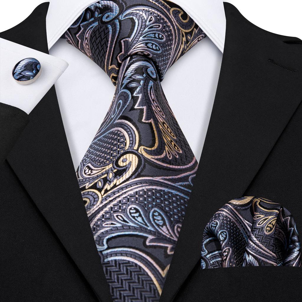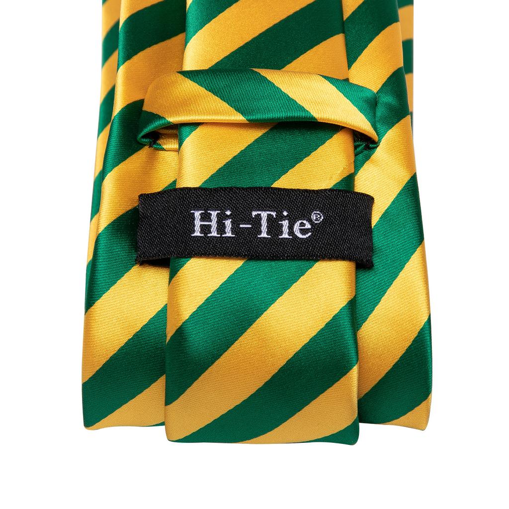 Hi-Tie модный мужской желто-зеленый полосатый галстук, носовой платок, запонки для деловой свадьбы