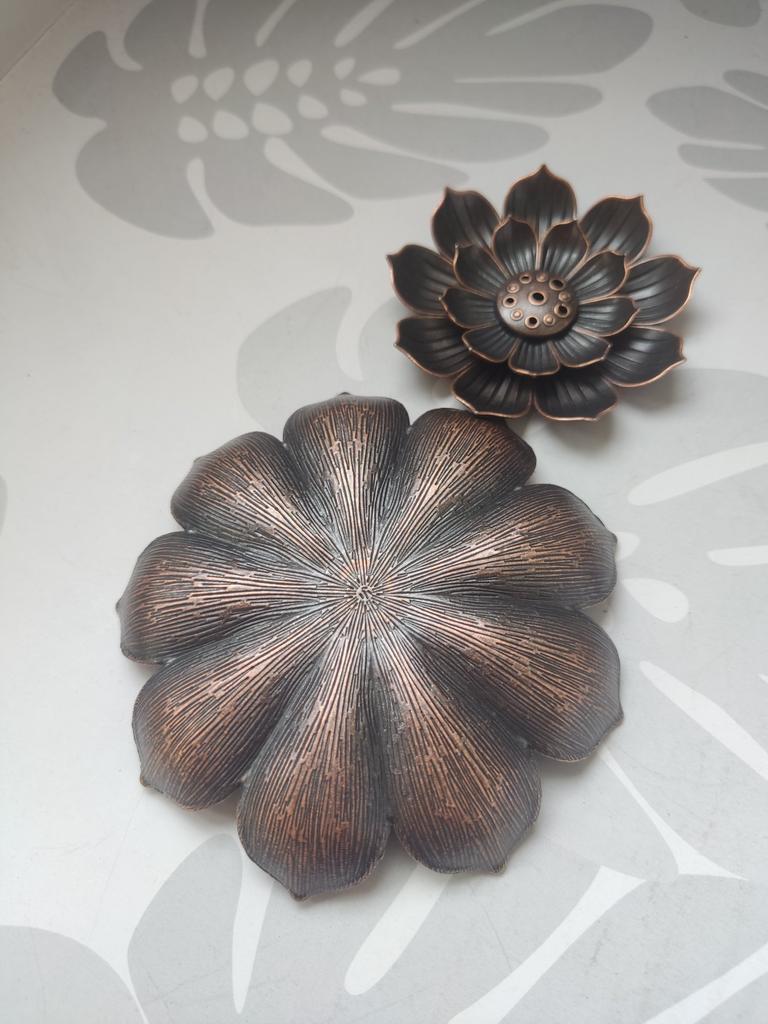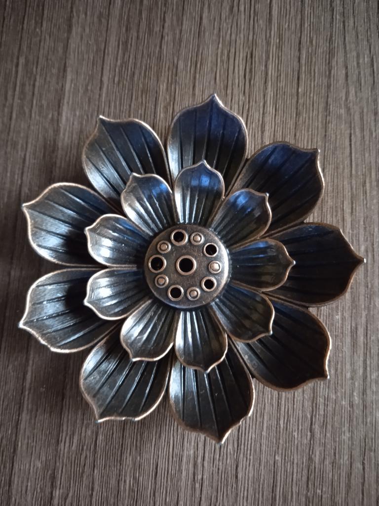 Декоративная подставка для благовоний. Это металл. Она достаточно тяжёлая. В диагонали самая большая чаша ( нижний цветок) примерно 10 см. Нижняя часть съёмная. Верхние два слоя лотоса спаяны. Интересная тематическая вещь. Мне понравилось. Рекомендую Удачных Вам покупок