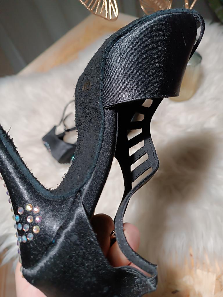 Очень удобные босоножки для танцев от DILEECHI💃 Никогда ещё у меня не было такой удобной обуви, правда! Босоножки мягкие, совершенно не ощущаются на ноге, каблук комфортной высоты, в них можно летать. Я бы носила их и в обычной жизни. Подошва не скользкая, каблук устойчивый. Высота каблука 8,5 см На свой 39 размер (24,5 см длина стопы) я взяла размер 40, ориентируясь по таблице продавца. Босоножки подойдут как на худую, так и на полную ножку за счёт регулируемой длины ремешка и вставок-резиночек, обшиты тканью, поэтому нигде не жмут и не натирают. Стразы приклеены. Держатся крепко. В мокрую погоду такую обувь конечно не обуешь. Босоножки понравились, рекомендую 👡 👌