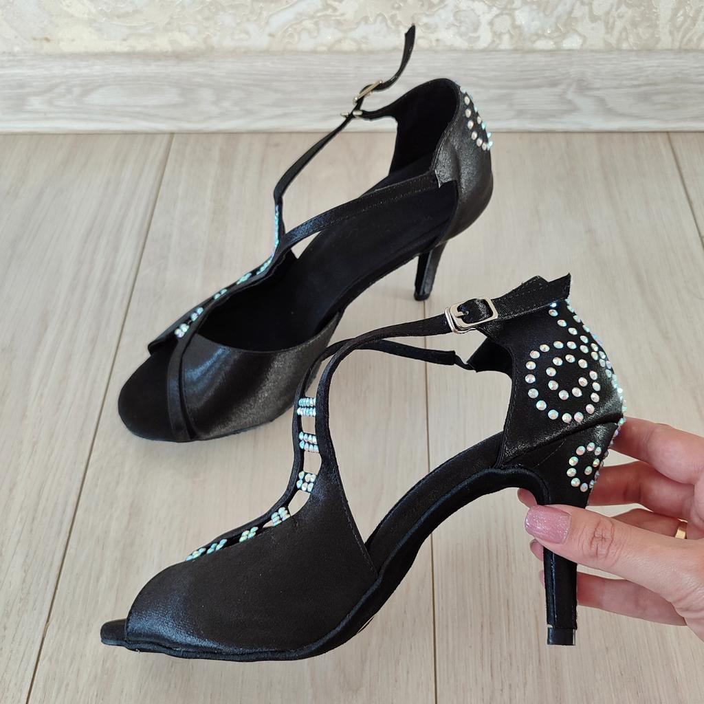 Женская танцевальная обувь DILEECHI, туфли для латинских танцев, женские черные атласные туфли со стразами и мягкой подошвой на тонком каблуке 8,5 см, вечерние туфли для сальсы, туфли для бальных танцев — купить товар онлайн с бесплатной доставкой до всему миру!
