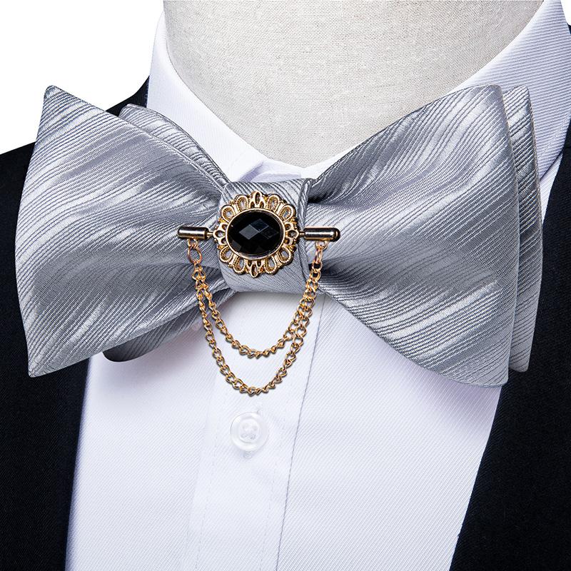 Dibangu Мужской комплект с предварительно завязанным галстуком-бабочкой, серый шелковый галстук, карманные квадратные запонки для официальной свадьбы