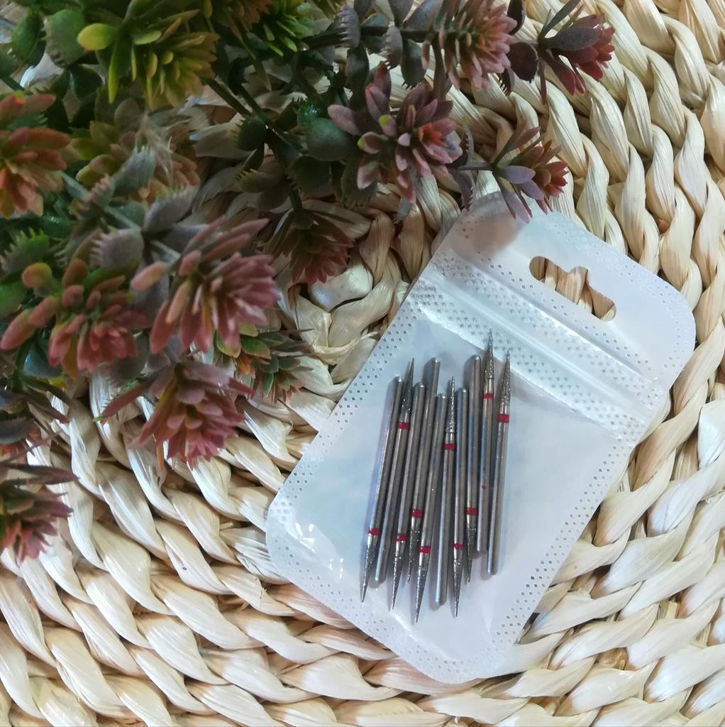 🌷 Набор насадок для аппаратного маникюра 🌻 Хороший набор из алмазных боров для наконечника маникюрного аппарата. 🌷 Но я брала этот набор совершенно для других целей - для работы. При изготовлении керамических коронок я использую точно такие же насадки, правда мои наконечники намнОООго мощнее, чем в аппарате для маникюра, но принцип действия тот же. 🌻 Набор состоит из 10 алмазных боров по форме напоминающих иголку. Правда кончик иглы не очень тонкий, но и такие боры очень востребованы при моей работе. 🌷 Красная маркировка боров говорит о том, что алмазное покрытие довольно мелкое и нежное, мельче только боры с жёлтой маркировкой. 🌻 Всё это богатство пришло в запаянном зип - пакетике. 🌷 Все насадки хорошего качества, претензий нет. Цена за такой набор вполне приемлемая - если покупать подобные насадки в специализированных магазинах со стоматологическим оборудованием, то цена выйдет намного выше. 🌻 Пришёл набор хорошо упакованный, в почтовом пакете с пупыркой. Хороший наборчик насадок, для аппаратного маникюра вообще находка!!! Как специалист, который ежедневно пользуется подобными насадками могу смело и от души рекомендовать!!! 🌷🌻🌷 Доставка до Омска в течении 32 дней с момента заказа, трек отслеживался до почтового отделения.