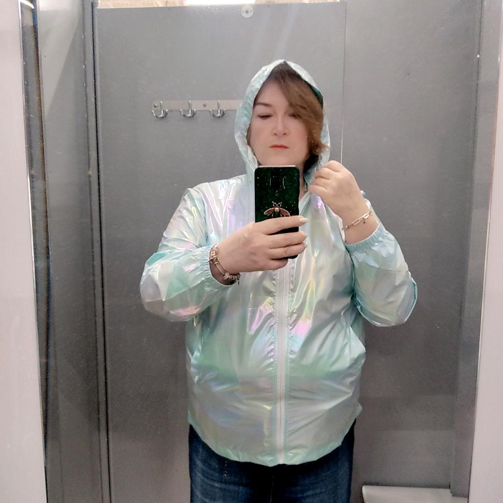 Думала, уже не похожу в обновке, у нас вроде обещали тепло. Ан нет, дожди и ветровочка пришлась кстати! Покупала за 900 руб с купоном, считаю, недорого за такую красоту! Цвет такой мятный, с хамелеоновым отливом, очень красивый. Похоже, это модно, меня даже молодые девицы задумчиво разглядывали и в их взгляде читалось: вот же свезло тетеньке, и где она эту красоту нарыла?!😁 Ещё и алишная подвеска подошла, как тут и была. Приятно радует, что она не душная. Вот вроде полиэстер, а эффекта сауны нет, я ходила в майке без рукавов и мне было норм. Брала 6XL, рукава даже длинные, и вообще длина хорошая. У меня ОГ 120, ОТ 114, ОБ 135, рост 178 Достаточно глубокий капюшон. Рукава на резинке, и она хорошо тянется. Сама курточка невесомая, можно носить с собой в сумке вместо зонтика. Она немного мнется, и я ее даже гладила с изнанки.