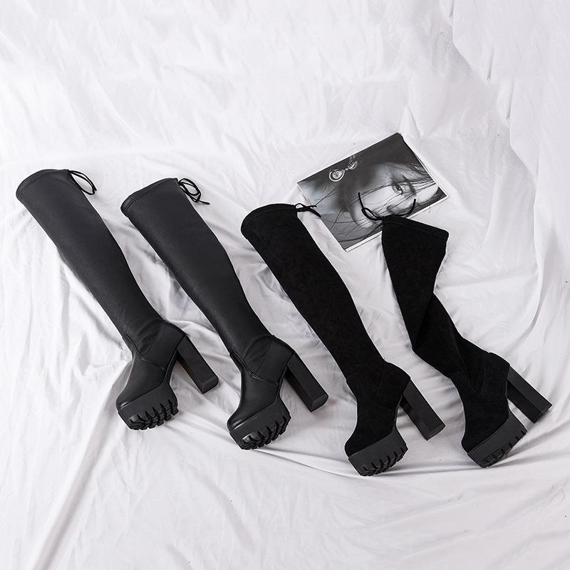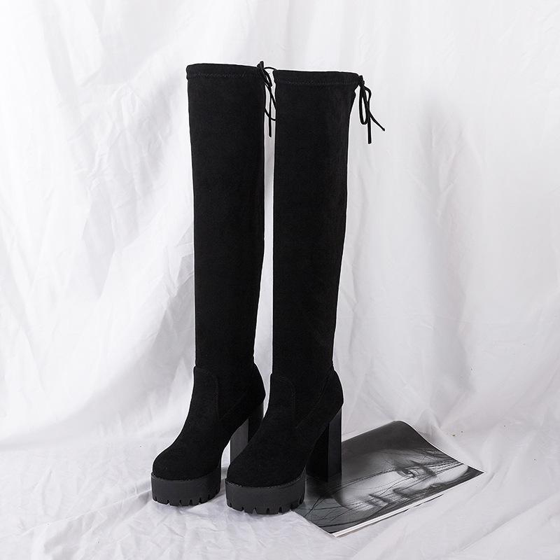 Сексуальные сапоги до колена, обтягивающие рыцарские сапоги в стиле «стёбаная труба», замшевые сапоги с круглым носком для женщин, модные бархатные теплые женские сапоги
