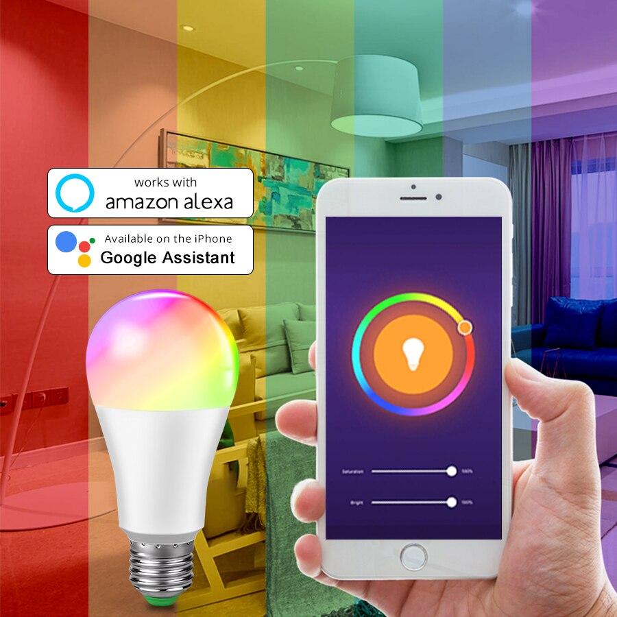 Светодиодная лампа E27 с регулируемой яркостью, Bluetooth 4.0, умная лампа, Wi-Fi, управление через приложение RGB+W RGB+WW 15 Вт AC85-265V, смена цветов, домашнее освещение