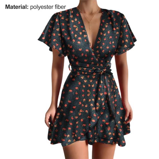 Женское короткое платье с глубоким V-образным вырезом, очаровательное облегающее платье с большим подолом и эффектом цветочного узора, летнее сексуальное мини-платье