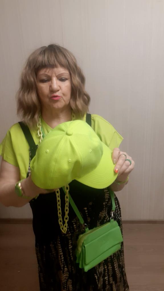 Бейсболку купила аж 8 июля 2024 года. Активно ношу, обзор забыла сделать. Купила за 227 рублей. Цвет флюоресцентный жёлтый. Но она зелено-желтая. Цвет красивый, мягкая, не жаркая. Сзади размер регулируется липучкой. Козырёк в ширину 18,5 см, в длину по центру спереди 7 см. По шву спереди от козырька до макушки 17 см. Сидит замечательно.