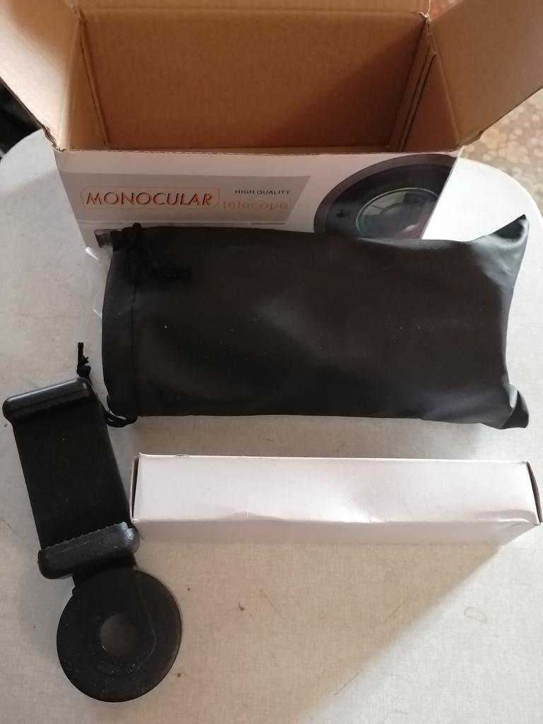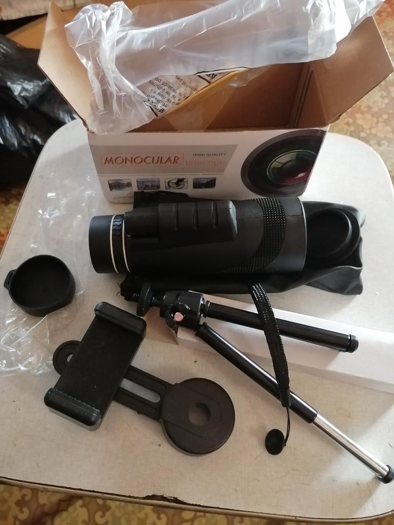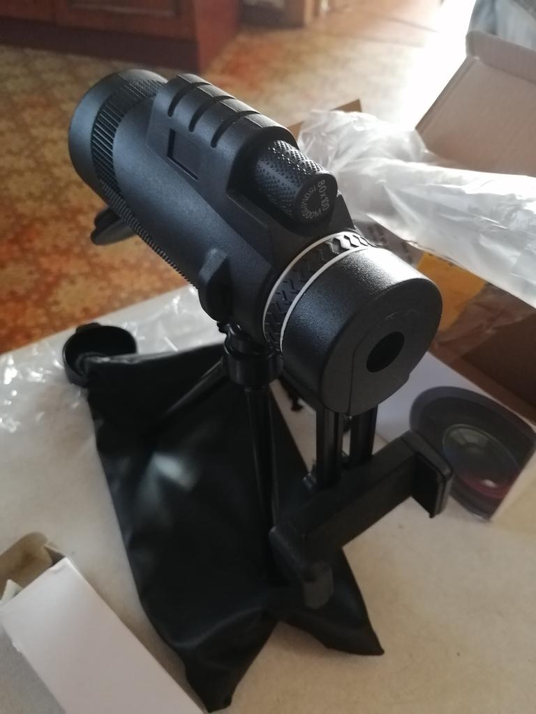 Посылка доехала в Москву за полтора месяца. Было заявлено, что монокуляр 80 кратный. На самом деле приближение практически отсутствует. Телескопический штатив для смартфона и монокуляра не выдерживает нагрузки и складывается. Общее впечатление негативное. Зря потрачены деньги.