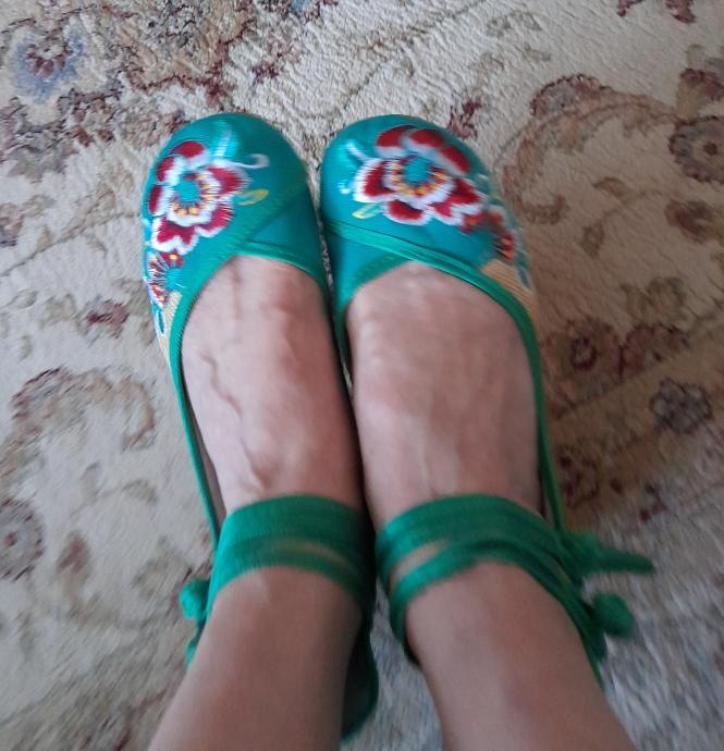 Удобные, красивые, мягкие туфельки. Выглядят нарядно и оригинально. Надела в жару +34, комфортно, не жарко, на ногах не чувствуются. На стопу 23.5 взяла 38 размер, сидят немного свободно, но это хорошо. У меня высокий подъем и узкая пятка, но туфли не слетают. Заказала еще красные, надеюсь, тоже будет удачная покупка. Спасибо продавцу и Джум!