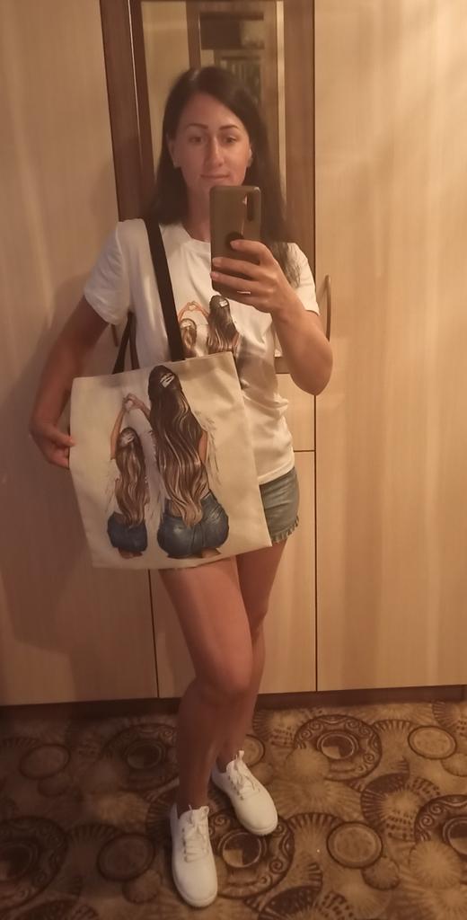 Сумка мне очень нравится,покупала под футболки с такими же рисунками или на подобие, получилось как комплект,и доче взяла в школу носить спортивную форму на физ-ру,они очень красивые,материал у них переливается,ручка средней длины спокойно вешается на плечо, однозначно рекомендую к покупке,потом обязательно куплю себе ещё других расцветок☺️ спасибо большое продавцу и Джуму🤗💖🌹