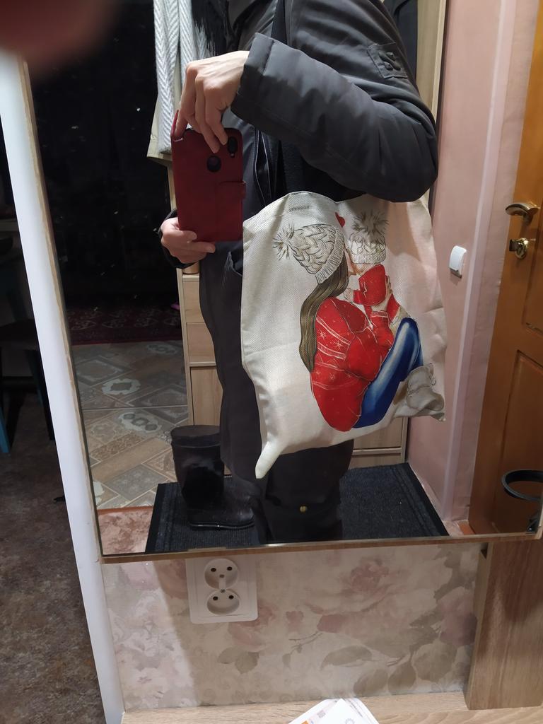 Супер-супер-супер!!! Сумочка пришла почтой России почти за месяц. За доставку я заплатила 30 р и это самый большой минус этого заказа. Сумка класная! Рисунок полностью соответствует тому, что вы видите в джуме. Красивый, милый, нанесён так, что, скорее всего, не смоется. Ткань по фактуре похожи на лен, немножко проклеена сзади, то есть какое то время она будет ещё и не промокать. Все качественно прошито. Товар рекомендую.
