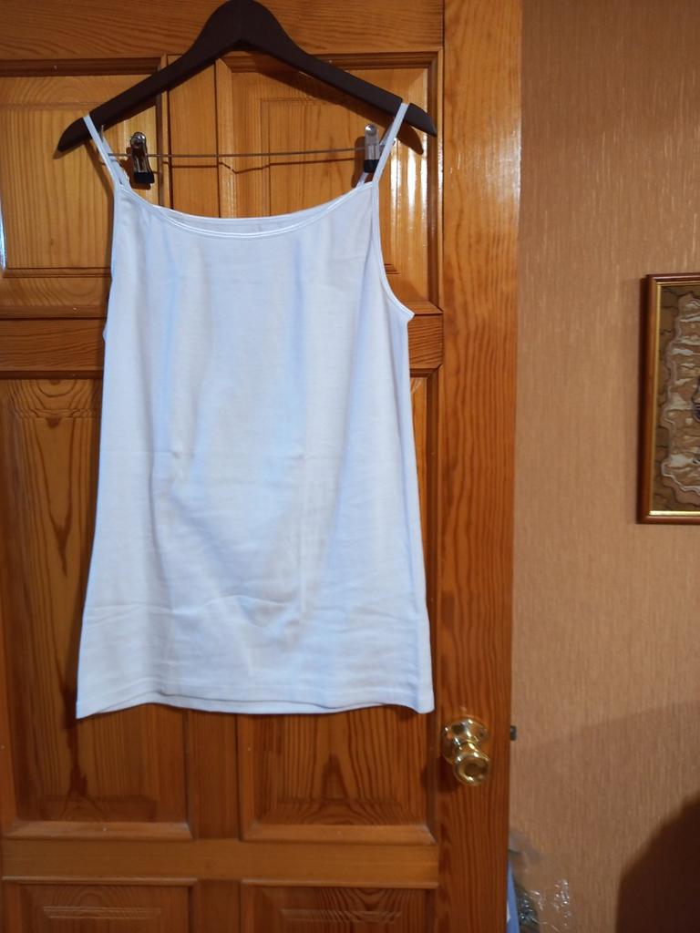 Майки (2 штуки) очень хорошего качества. 100% хлопок. Кант по горловине и брительки тянутся, легкая резиночка. Майка длинная, прикрывает попу. Размер написан 48/50, но мне великоваты, ношу русский 48/50. Мне кажется хорошо будут на размер 52/54. К покупке и продавца рекомендую. Дополняю: майки у меня купил человек, который носит русский размер 56.