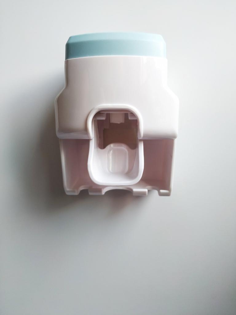 Механический диспенсер. Путем нажатия на рычаг внутри диспенсера выстреливает паста не сильно равномерно на щетку(иногда мимо). И ещё и не все тюбики подходят. Нужно что бы носик у тюбика был узким и длинным, чтобы поместится в вакуумную резинку для тюбика. Минус в том, что он ещё и никак не закрепляется, есть вероятность, что выпадет. Вообщем мне пришлось купить пасту новую другую, чтобы она «села» в диспенсер. А старая по прежнему стоит на раковине…