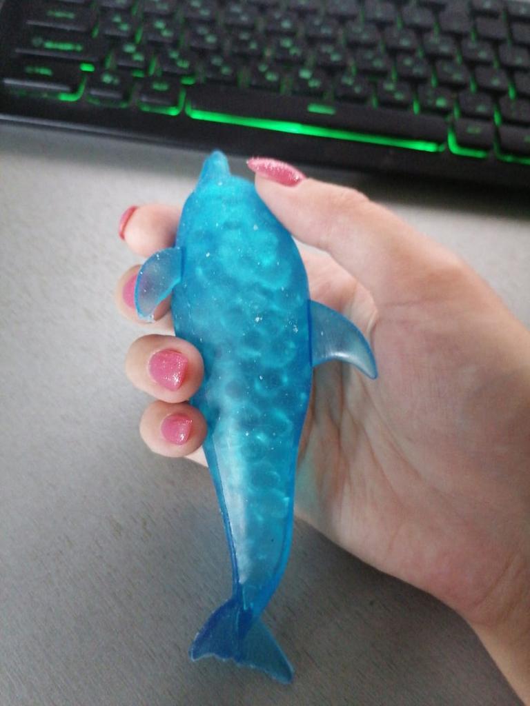 Игрушка антистресс, дельфин достаточно большой. Ребенку очень нравится. Из минусов что липнет вся пыль на него.