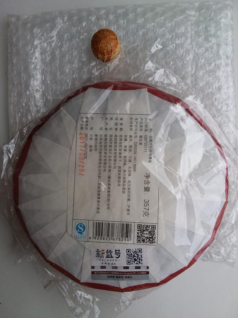 Заказ получил. Упакован нормально, хотя мог бы и повредиться. Все как на фото. Вскрывать ещё не вскрывал. Приятно пахнет пуэром даже через упаковку. Как заварю, дополню отзыв (возможно), хотя есть большое желание любоваться товаром и не вскрывать его, а хранить, очень уж он красивый)) P.S. есть пробничек непойми чего. если честно, то пахнет чай в пробнике неприятно! и не понятно, какой он, черный или зелёный. или вообще травяной какой нибудь. пуэром не пахнет точно! но это не недостаток, так как пробник бесплатный))