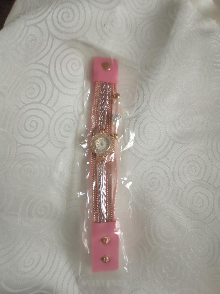 При получении немного опешила, не ожидала что вместо застёжки будут кнопки,но когда примерили все смотрелось отлично. Приятная неожиданность была когда сняли с заводника стопор часики пошли. Батарейка была установлена. Все отлично. Спасибо.