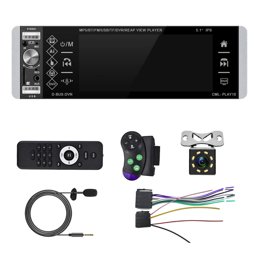 Podofo Универсальный 5,1-дюймовый автомобильный радиоприемник с одним Din, MP5-плеер, авторадио, голосовой помощник, сенсорный экран, Bluetooth, FM, AUX, USB, SD, автомобильный видеорегистратор, видеоплеер