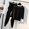 Женский комплект из двух предметов, спортивные костюмы, женские зимние шерстяные вязаные теплые свитера, шаровары, костюм, повседневные женские комплекты, зимняя одежда